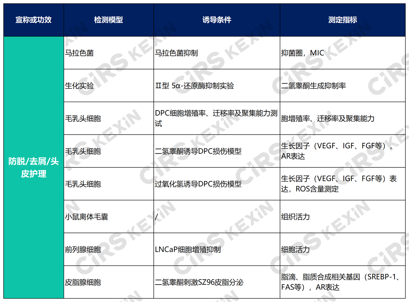 通過對于細胞增殖率、遷移率、聚集能力測試,以及二氫睪酮誘導(dǎo)相關(guān)模型中的機理研究,為防脫、去屑及頭皮護理相關(guān)的功效宣稱提供科學(xué)支持。