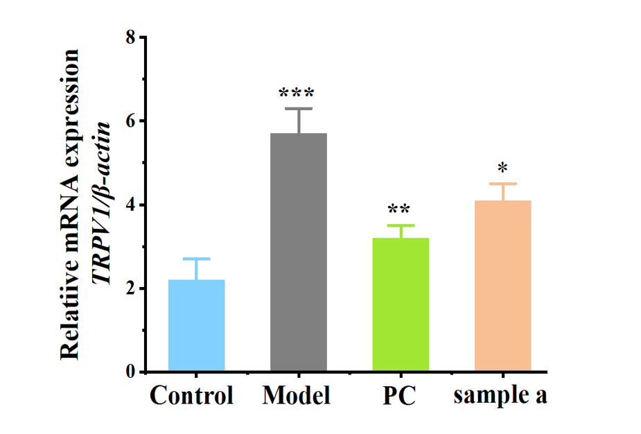 與模型組相比,樣品組TRPV1表達下調,表明樣品具有一定的舒緩功效。