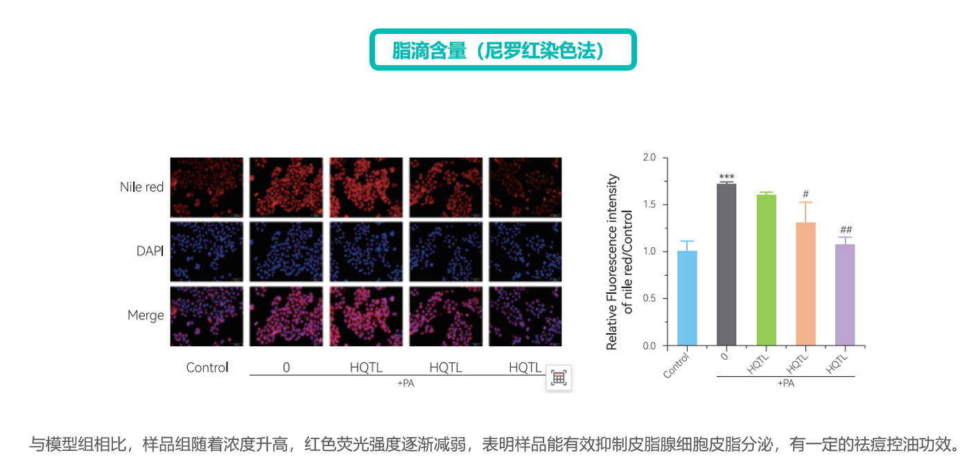 控油 | 皮脂腺細胞中皮脂含量 | 控油 | 脂滴 | 熒光染色 |