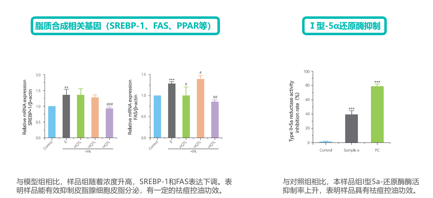 Ⅰ型5α-還原酶抑制 | 模擬雄激素引起油脂分泌增多 | 對DHT生成的抑制率 | 吸光度法 | |